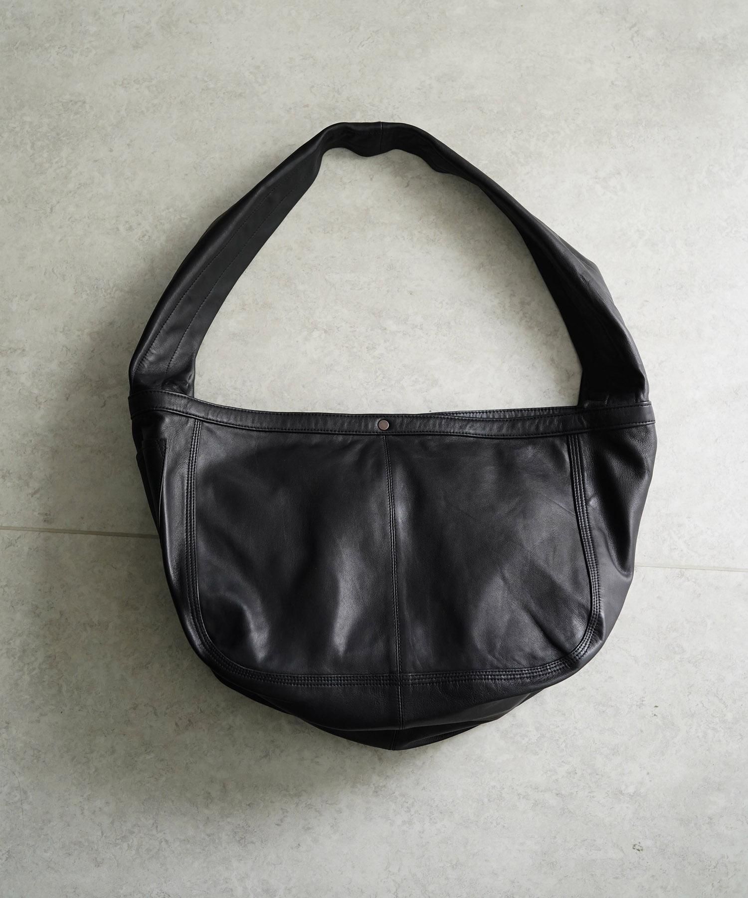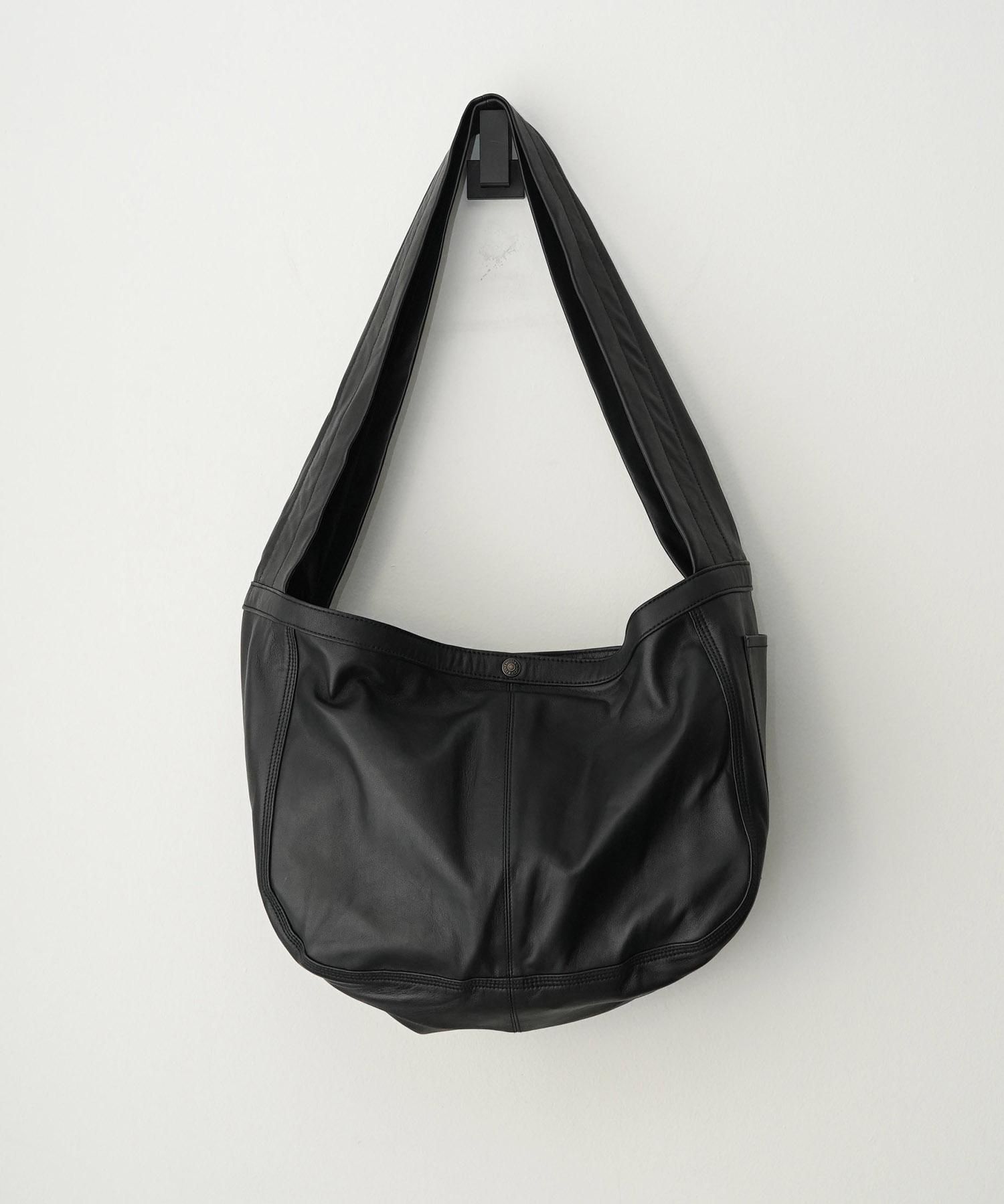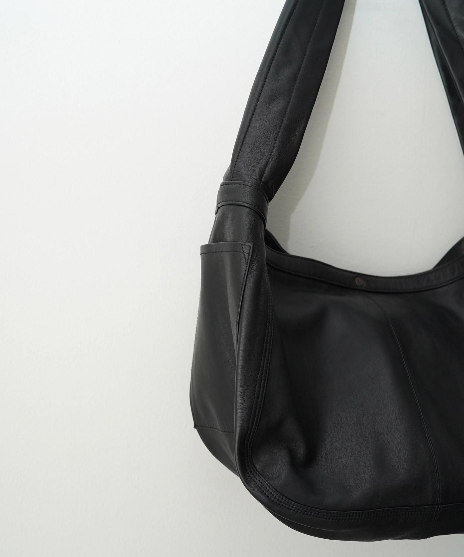 DESCRIPTION しなやかな質感と、研ぎ澄まされたミニマルデザインが魅力のレザーショルダーバッグ。 軽く柔らかな**シープスキン(羊革)**を贅沢に使用し、肩に掛けた瞬間、身体のラインに沿うように自然と馴染みます。 ゆとりのあるマチと十分な容量を備え、日常から小旅行までシームレスに対応。 幅をもたせたショルダーストラップは、荷物の重さを分散し、長時間の使用でも驚くほど快適です。 構築的でありながら、しなやか。機能性とエレガンスが美しく調和しています。 無駄を削ぎ落としたフォルムは、カジュアルにもモードにも寄り添うユニセックスな佇まい。 上質なブラックレザーは、深く艶やかに光を受け、使うほどに柔らかさと陰影を増していきます。 SIZE(cm) F:Height29 Width57 Depth24 MATERIAL SHEEP SKIN
