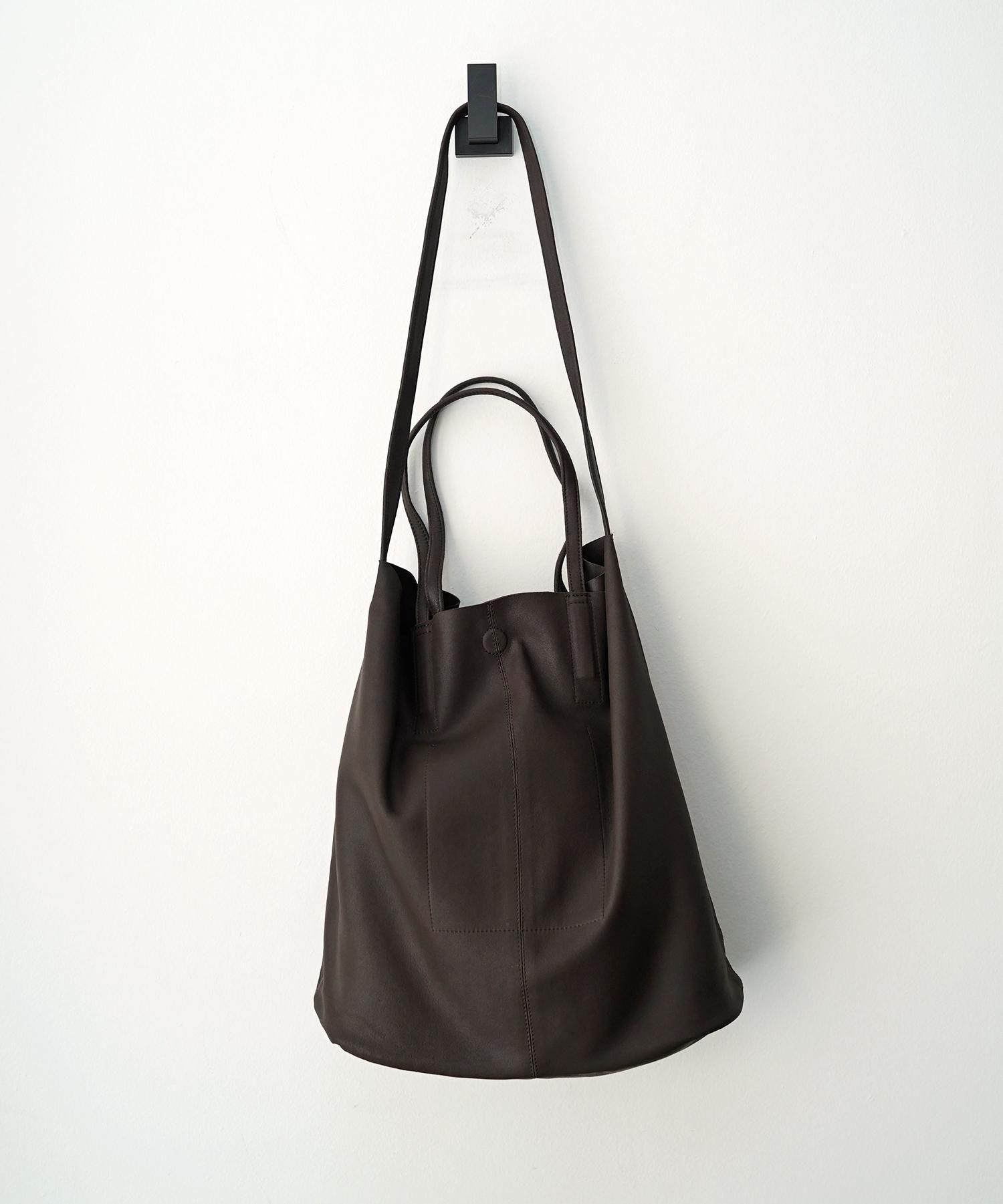 DESCRIPTION Morphéeが採用するレザーは、軽やかさと堅牢さを兼ね備えた上質な素材。 ソフトな質感に反して、非常に強度があり型崩れしにくいのが最大の特徴です。 その原材料には、繊維密度が高く、しなやかでありながら耐久性にも優れたゴートレザーを使用。 シープスキンやカウハイドよりも緻密な繊維構造を持ち、使うほどに手に馴染む感触をお楽しみいただけます。 細やかなシボが生み出す表情は、空気や手の温もりを受けて少しずつ柔らかく、しなやかに変化していきます。 その経年変化はまるで時間とともに育つような美しさ。 使うたびに深みを増す、Morphéeならではのエレガンスを感じていただけることでしょう。 注:海外からの輸送にあたり折りたたんで梱包しております都合で、一部商品にシワ跡が残っている場合がございますが、レザー素材ですので使用しているうちに伸び、元に戻ります。また、革本来が持ちます特有の細かい傷、多少のシワ跡につきましては素材の特性上であり、ブランドの意向で(極端なものを除いて)良品とさせていただいております。天然皮革の性質上、使用している革にも若干の個体差がございます。また、デザイン仕様のアップデートがシーズン毎にあり画像と異なる場合があります。プレゼント包装は対応しておりません。恐れ入りますが予めご了承くださいませ。 SIZE(cm) Width:42cm Height:37cm Depth:17.5cm Handle:48cm × 1.2cm Shoulder strap:80cm × 2cm Pocket:14.5cm × 11cm Wight : 400g MATERIAL GOAT LEATHER, POLYESTER (Inside bottom)