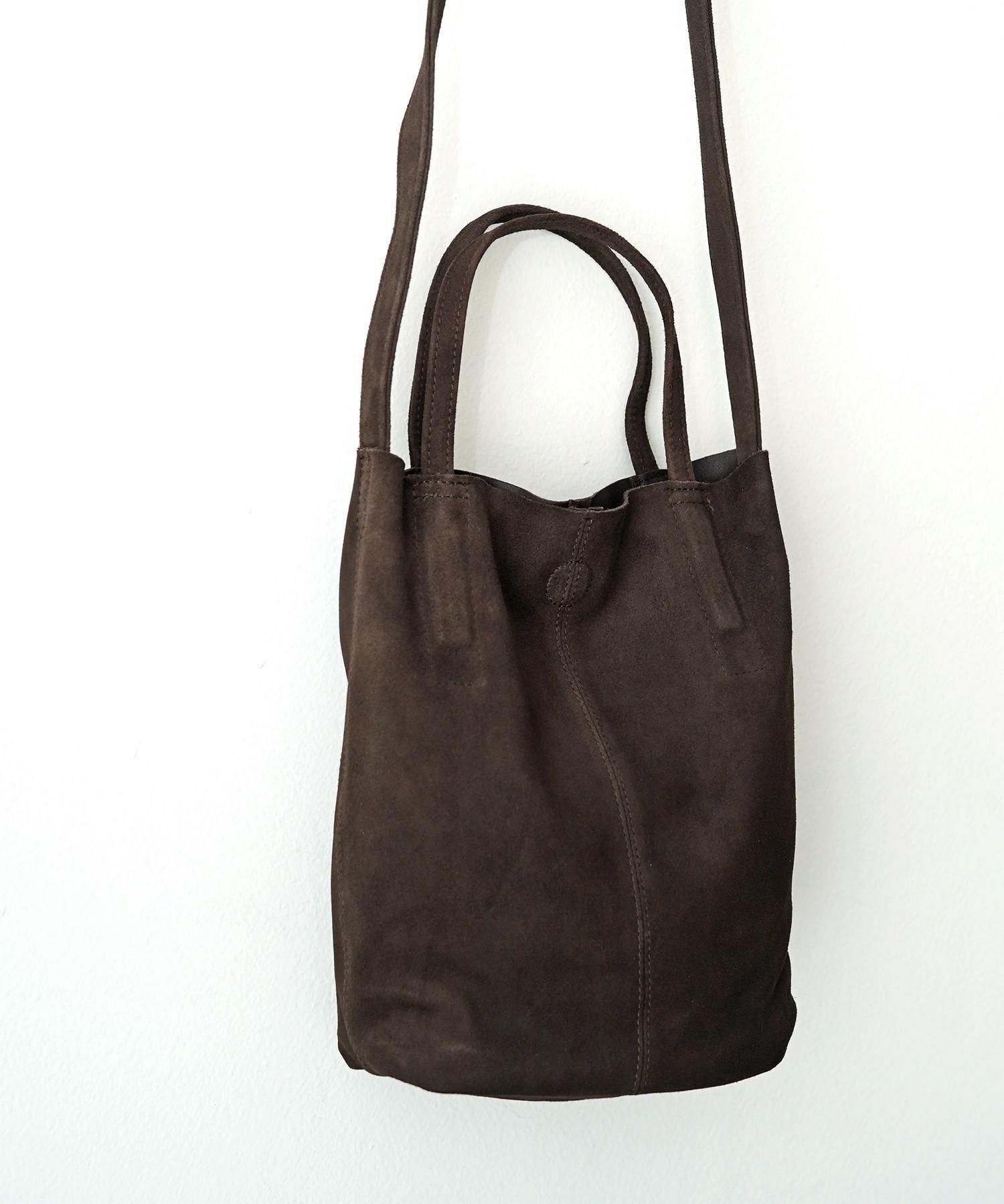 DESCRIPTION <新素材OIL SUEDE> 微量のオイルを入れることで通常のスエードレザーよりも撥水効果が期待でき、より高級な仕上がりになる加工を施しております。使いこむほどに柔らかくなる独自の経年変化もぜひお楽しみください。 ※素材の特性上、他の衣類に色移りすることがあります。特に使い始めの際には白色系の衣類での使用はお避けください。使用する度に素材も慣れてきて色移り等が軽減されますが、上記ご留意のうえご検討くださいませ。 注:海外からの輸送にあたり折りたたんで梱包しております都合で、一部商品にシワ跡が残っている場合がございますが、レザー素材ですので使用しているうちに伸び、元に戻ります。また、革本来が持ちます特有の細かい傷、多少のシワ跡につきましては素材の特性上であり、ブランドの意向で(極端なものを除いて)良品とさせていただいております。天然皮革の性質上、使用している革にも若干の個体差がございます。また、デザイン仕様のアップデートがシーズン毎にあり画像と異なる場合があります。プレゼント包装は対応しておりません。恐れ入りますが予めご了承くださいませ。 SIZE(cm) Width: 24.5cm Height: 25cm Depth: 10cm× 16.5cm Handle: 30cm × 1.2cm Shoulder strap:105cm × 1.5cm Pocket: 14.5cm× 11cm Wight : 200g MATERIAL GOAT LEATHER, POLYESTER (Inside bottom)