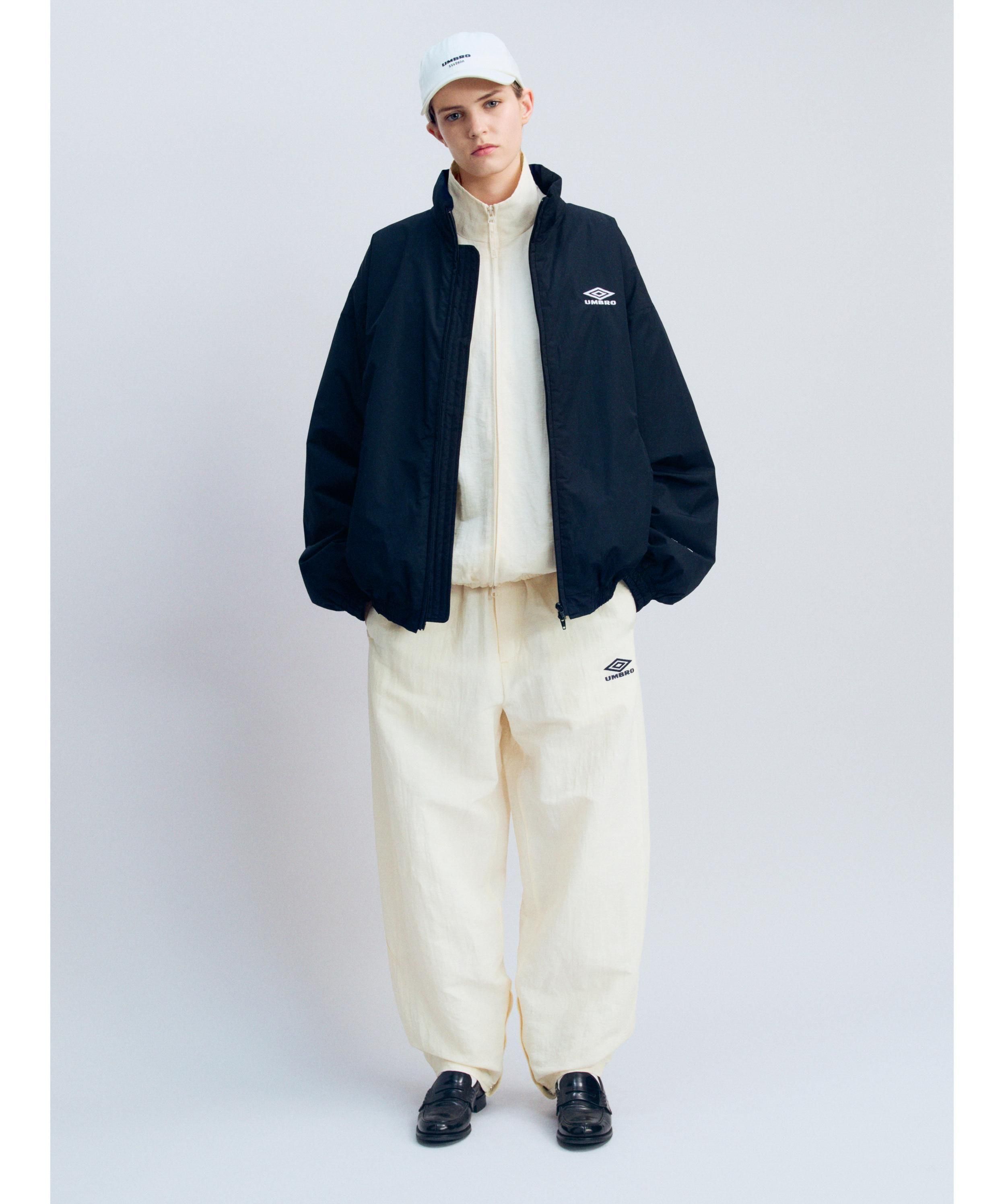 DESCRIPTION WATER REPELLENT CAP / ssstein × UMBRO スポーツヘリテージとコンテンポラリーデザインが交差する、 ssstein × UMBRO の特別仕様ウォーターリペレントキャップ。 イタリア・OLMETEX社によるポリエステル×コットンカルゼを採用。 深みのある自然な光沢、澄んだ色彩、そして撥水性を兼備した上質素材は、 日常の装いに控えめな威厳を添えます。 フロントには両ブランドのロゴを、バックにはUMBROロゴを配し、 ミニマルながら確かな存在感を演出。 シーズンレスに活躍し、カジュアルからドレススタイルのニュアンスダウンまで、 余裕あるスタイリングを叶える逸品です。 SIZE(cm) ONE: Head circumference51-65 Height10 Bill7 MATERIAL 68% POLYESTER, 32% COTTON