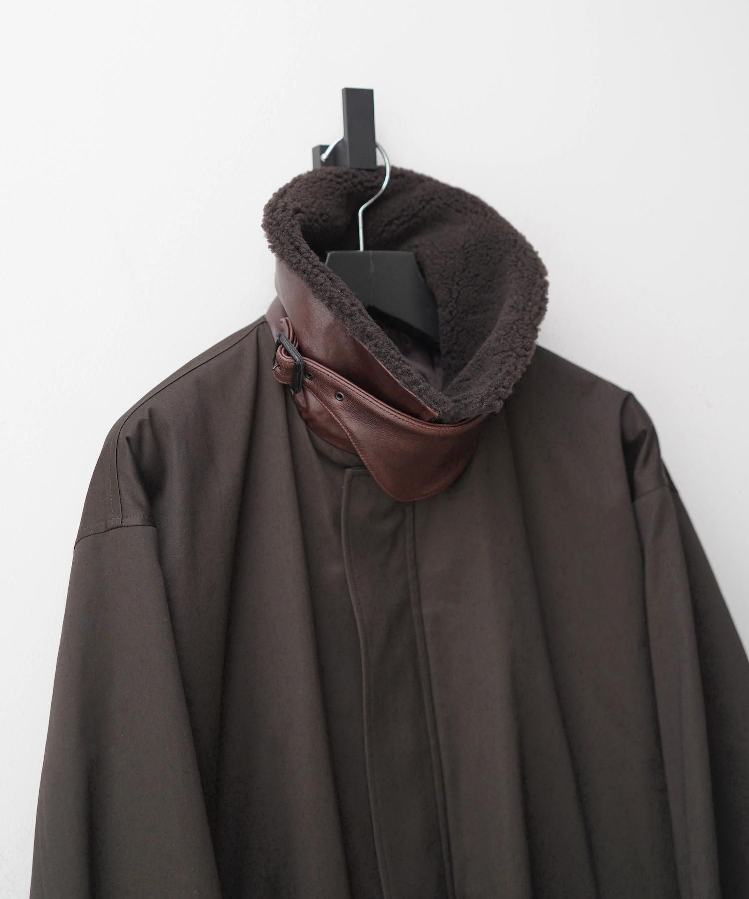DESCRIPTION 素材感の組み合わせによるコントラストを意識して製作したライト中綿ジャケット。 フライトジャケットのディテールをベースに素材を組み合わせながら、全体はミニマルな印象に仕上がるよう製作を進行。表地のコットンダブルサテン、襟にはシープムートン、襟裏・タブにはカウレザーを施している。 格別になめらかなタッチと美しい生地の表情を活かしつつ、ジャケットのシルエットが綺麗に出るよう内側は極薄のキルティング仕様に。 SIZE(cm) S : Length 71 , Shoulder 55 , Width 74 , Sleeve 64 M : Length 73 , Shoulder 57 , Width 76 , Sleeve 66 MODEL : 182cm, 61kg and wears a size M. MATERIAL 100%COTTON