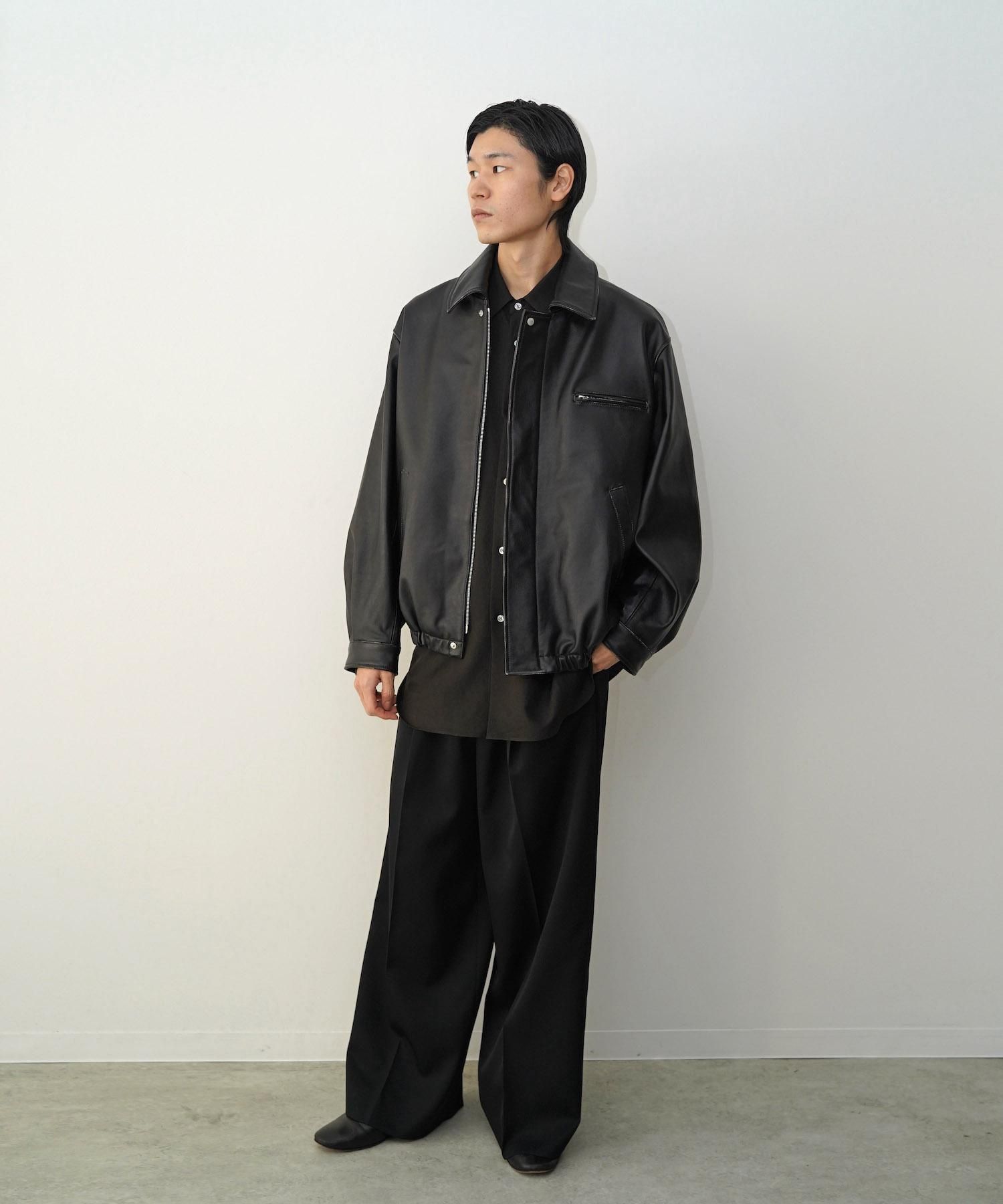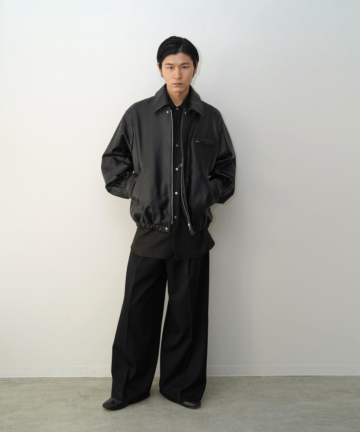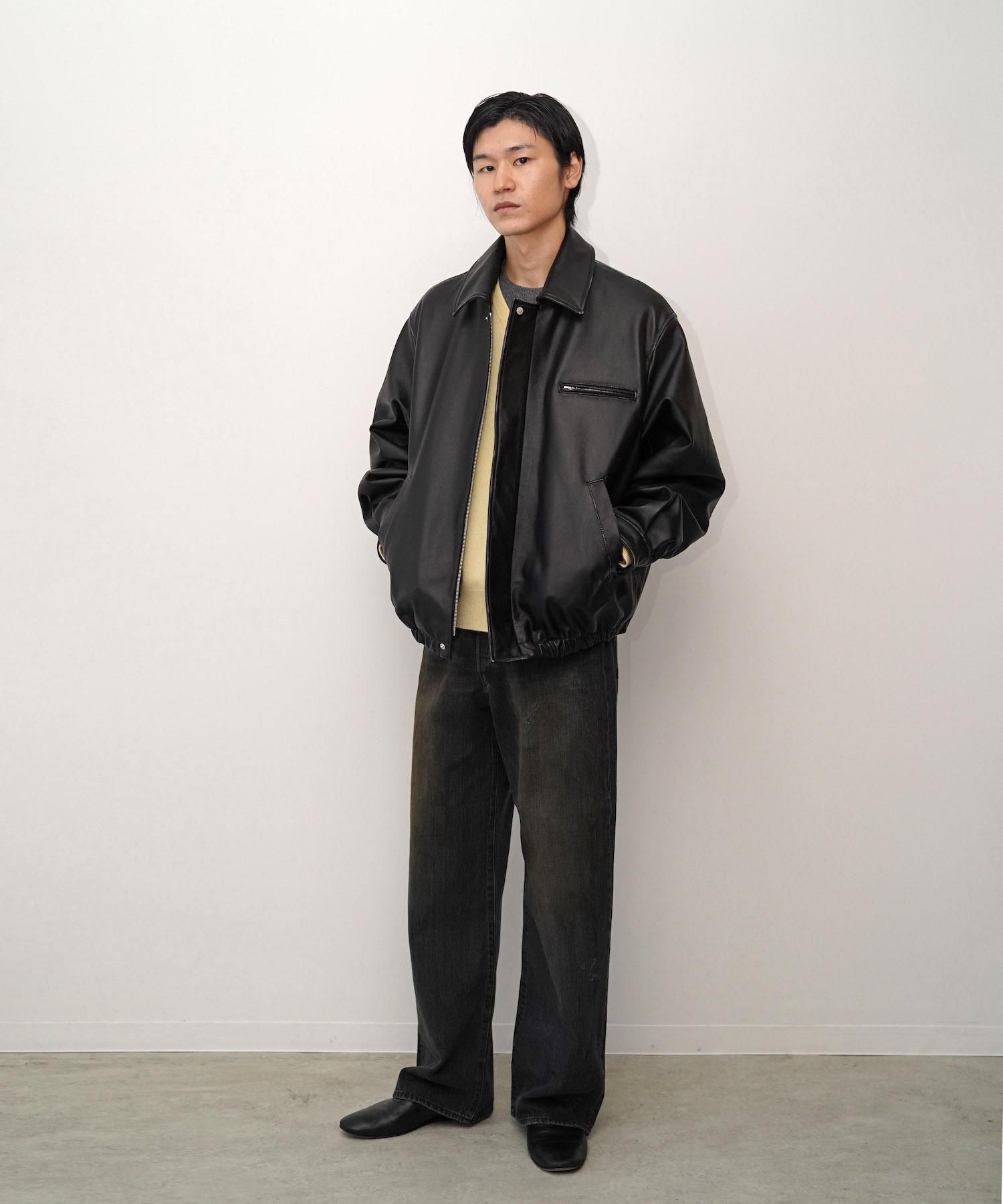 DESCRIPTION 適度な肉感のあるカウレザーを使用したジップジャケット。 着古したような表情になるよう、顔料・オイルを少しずつ染み込ませながら表情に奥行きが出るよう革を製作。 縫製後に洗い加工、手作業で部分的な加工を施し、着古したような全体の表情に仕上げている。袖口、裾口はゴム仕様でミニマルな印象になるよう調整している。 SIZE(cm) S : Length 70 , Shoulder 51 , Width 64 , Sleeve 60 MODEL : 182cm, 61kg and wears a size S. MATERIAL COW LEATHER