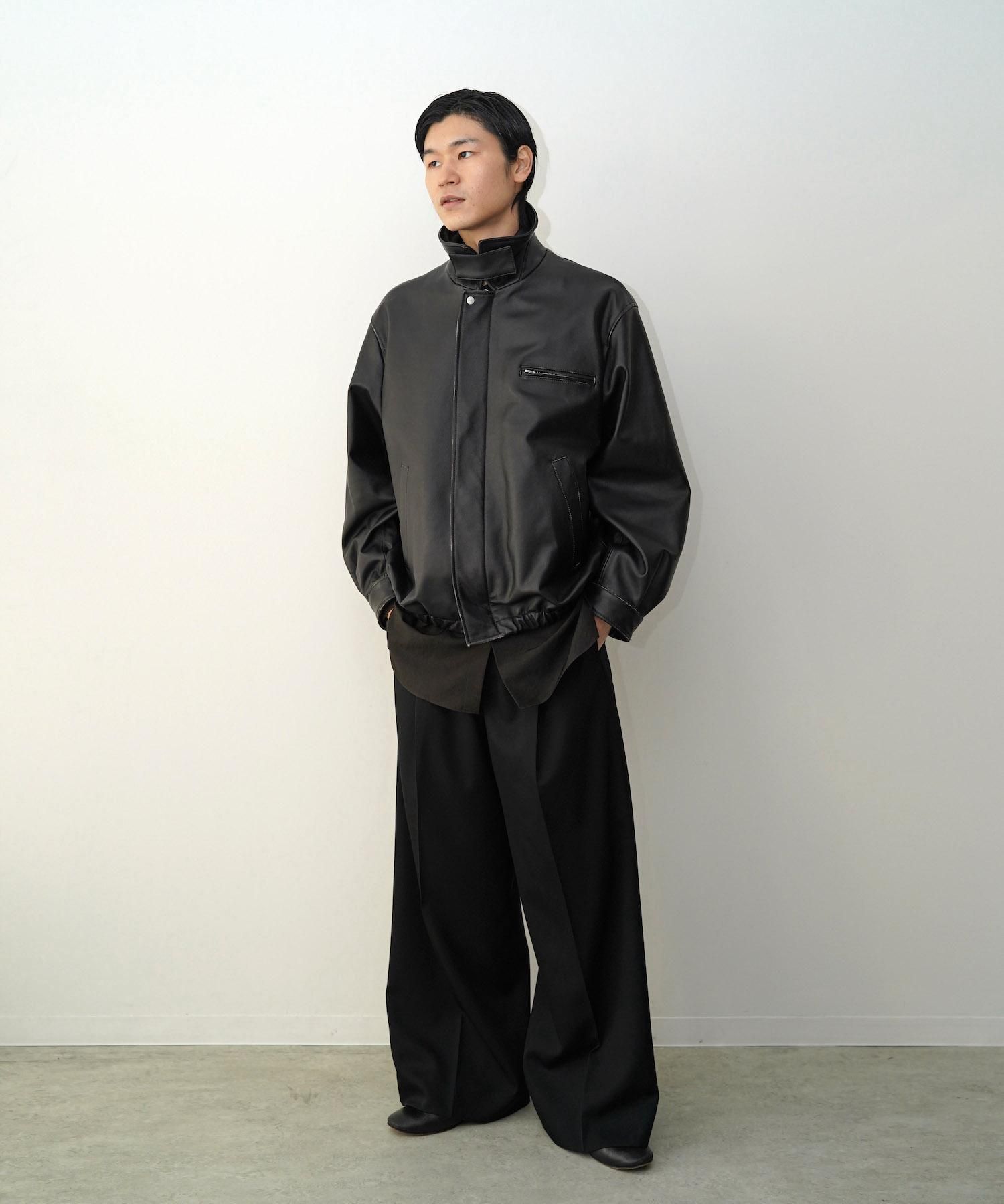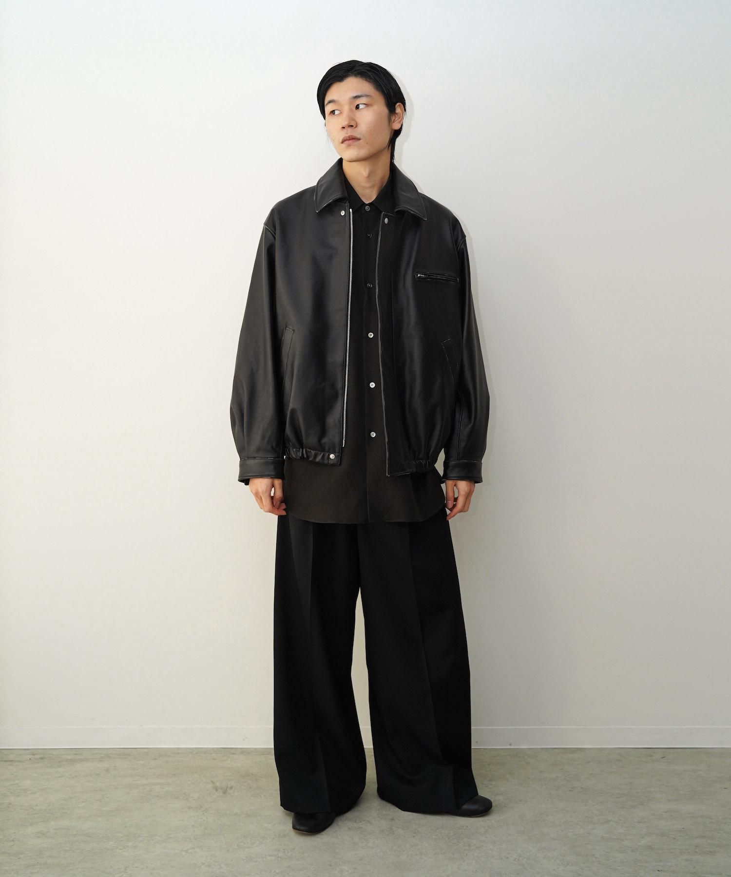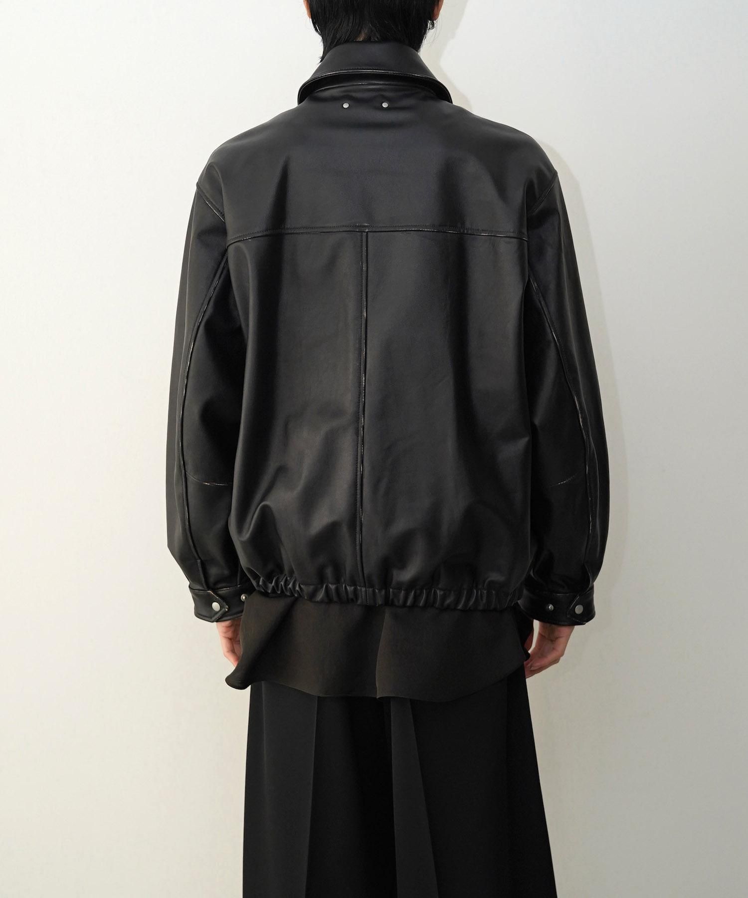 DESCRIPTION 適度な肉感のあるカウレザーを使用したジップジャケット。 着古したような表情になるよう、顔料・オイルを少しずつ染み込ませながら表情に奥行きが出るよう革を製作。 縫製後に洗い加工、手作業で部分的な加工を施し、着古したような全体の表情に仕上げている。袖口、裾口はゴム仕様でミニマルな印象になるよう調整している。 SIZE(cm) S : Length 70 , Shoulder 51 , Width 64 , Sleeve 60 MODEL : 182cm, 61kg and wears a size S. MATERIAL COW LEATHER