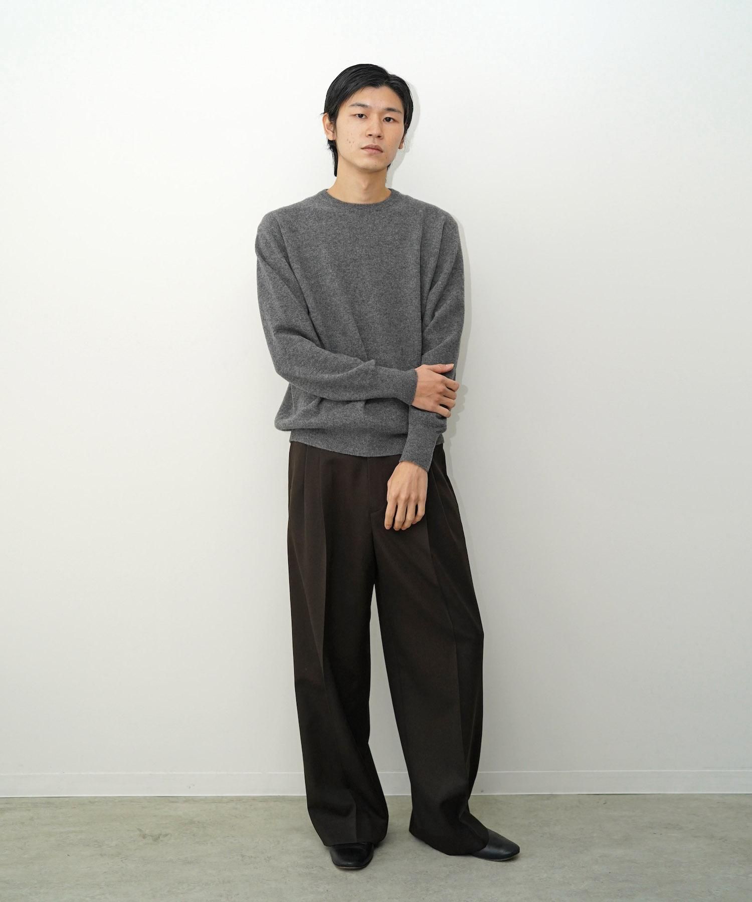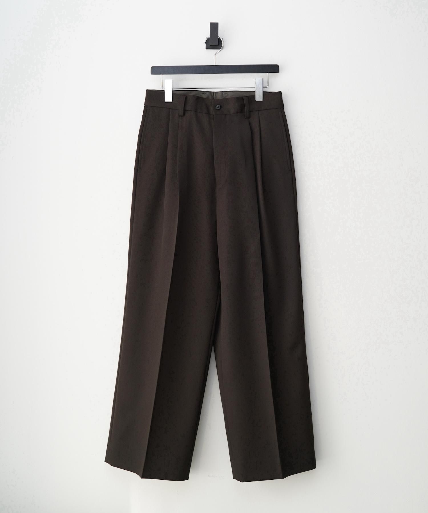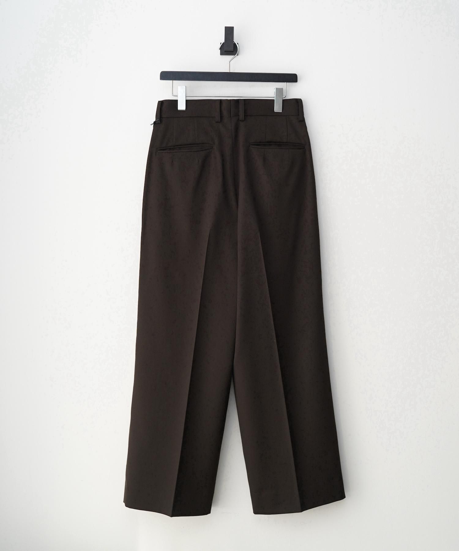 DESCRIPTION わたり幅から裾幅までワイドに設定したツータックトラウザーズ。 腰回りはすっきりとしたフィット感になるよう調整し、ワイドなシルエットながら上品な、エレガントなバランスに仕上がっている。 SIZE(cm) S : Waist 76 , Rise 38 , Inseam 75 , Thigh 37 , Leg Opening 28.5 MODEL : 182cm, 61kg and wears a size S. MATERIAL 100%WOOL
