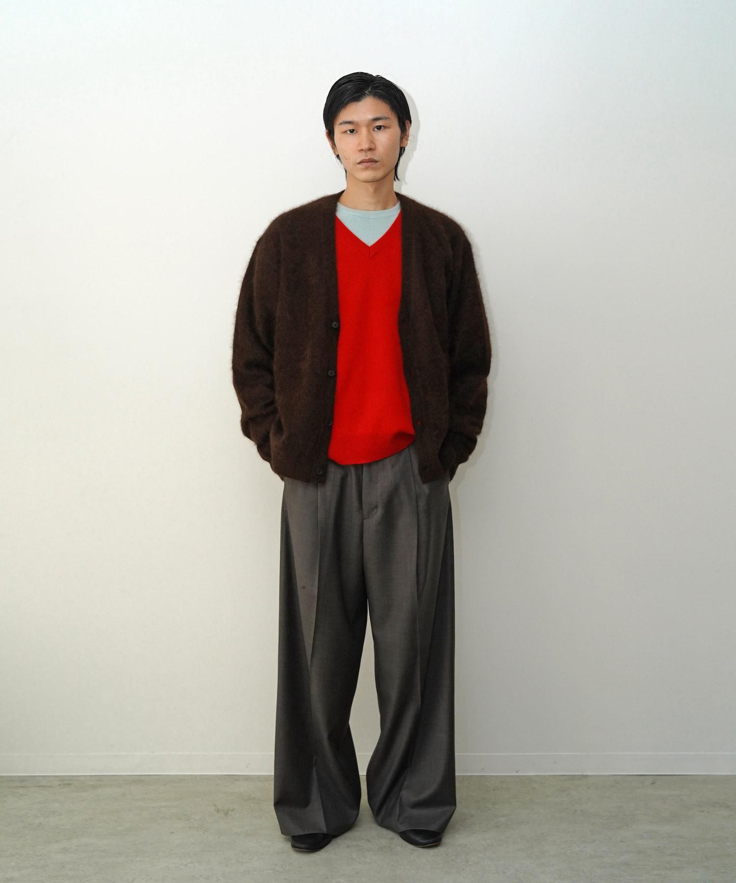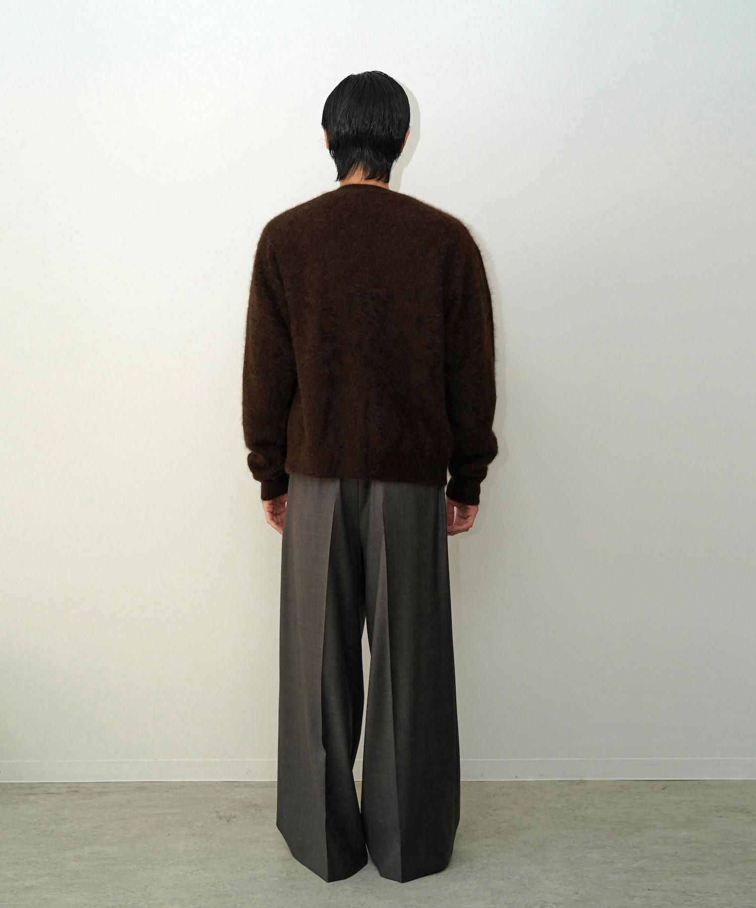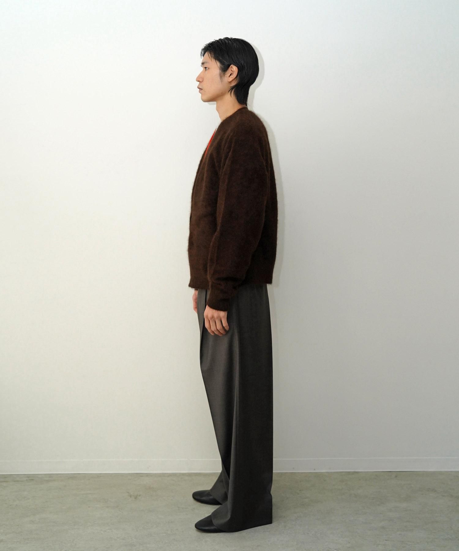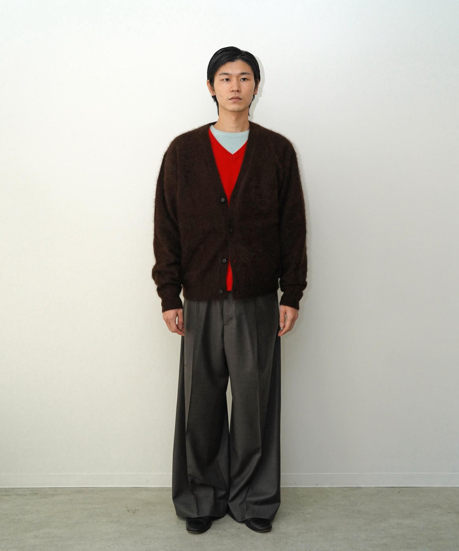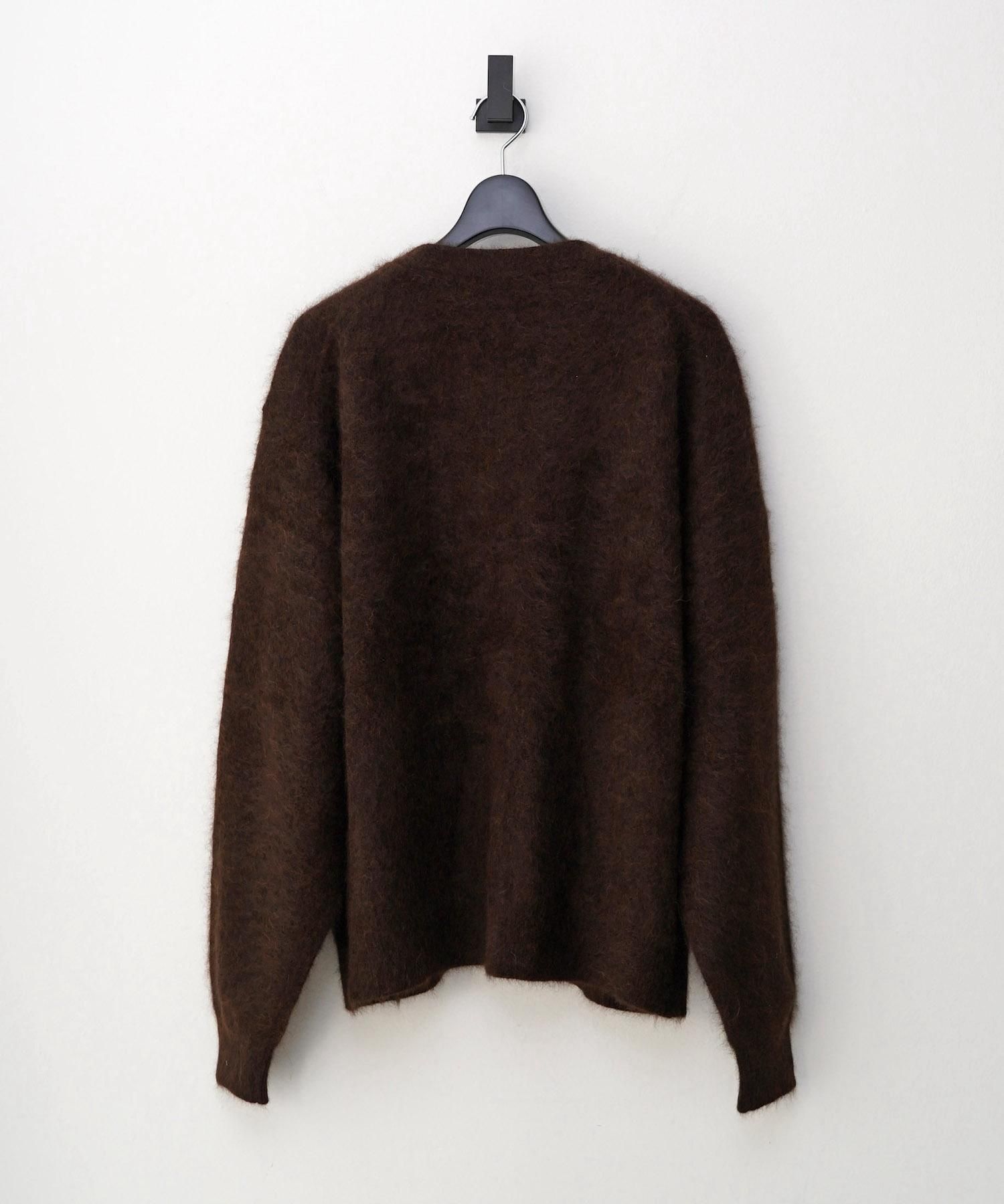 DESCRIPTION 毛足の間に空気を含み暖かく、滑らかな肌触りと圧倒的な軽い着心地が特徴のラクーンを使用したすっきりめの丈に設定したニットカーディガン。 編地は緩く編み、仕上げの加工で縮ませて膨らみをもたせている。 非常に軽いやわらかい着心地と、上質な美しい毛足感、艶感が魅力。 SIZE(cm) S : Length 61 , Shoulder 52 , Width 61 , Sleeve 60 M : Length 63 , Shoulder 53 , Width 63 , Sleeve 62 L : Length 67 , Shoulder 55 , Width 64 , Sleeve 64 MODEL : 182cm, 61kg and wears a size L. MATERIAL 100%RACOON HAIR