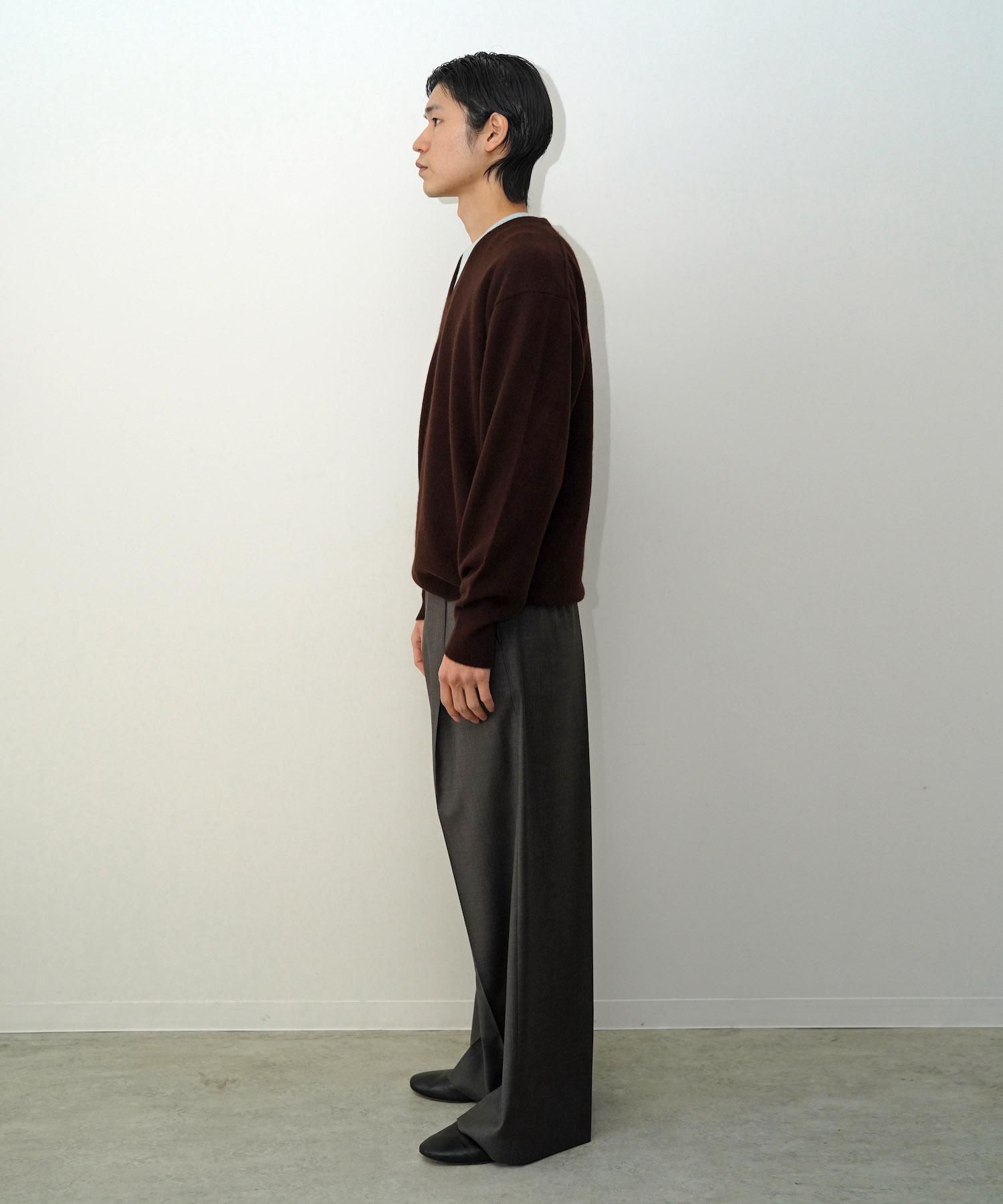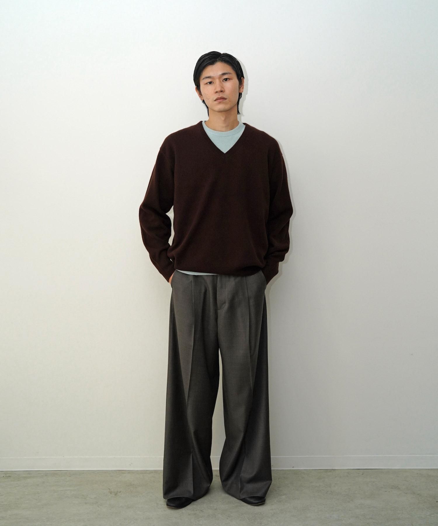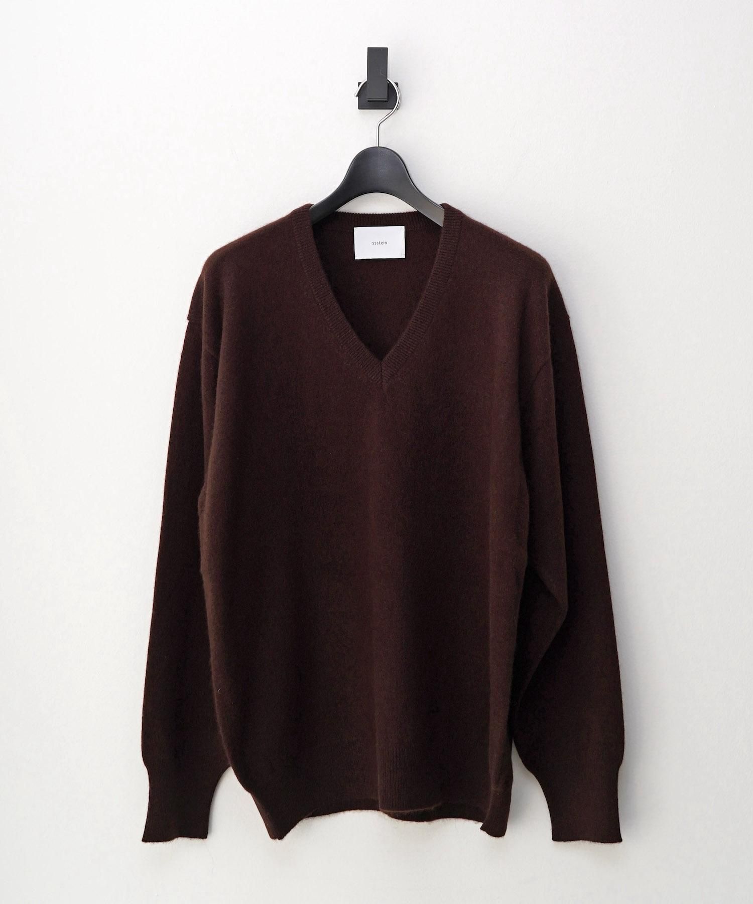 DESCRIPTION 厳選された高品質のカシミヤ原料を丁寧に紡いだ高級カシミヤ糸を使用したVネックセーター。 緩めに編んで加工で原料の良さが際立つようふんわりとふくらみを出している。 カシミヤ特有の上質なやわらかい着心地、自然な光沢感のある美しい編地が特徴。 SIZE(cm) S : Length 67 , Shoulder 50 , Width 59 , Sleeve 60 MODEL : 182cm, 61kg and wears a size S. MATERIAL 100%CASHMERE