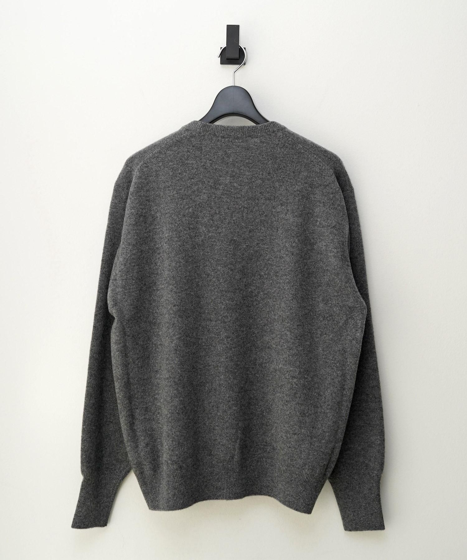 DESCRIPTION オーストラリアの中でも特に細番手メリノ羊毛の産地であるマッジー地区、ジロン地区の厳選されたファインメリノラムをブレンドした細番手の上質な紡毛糸を使用したクルーネックセーター。 度詰め気味に編み、軽く縮絨をかけることで美しい目面を残したまま適度な膨らみ、弾力のある表面感を実現。風合いだしの仕上げ方法にもこだわり、とても上質な風合いに仕上げている。 SIZE(cm) S : Length 66 , Shoulder 48 , Width 57 , Sleeve 62 MODEL : 182cm, 61kg and wears a size S. MATERIAL 100%WOOL