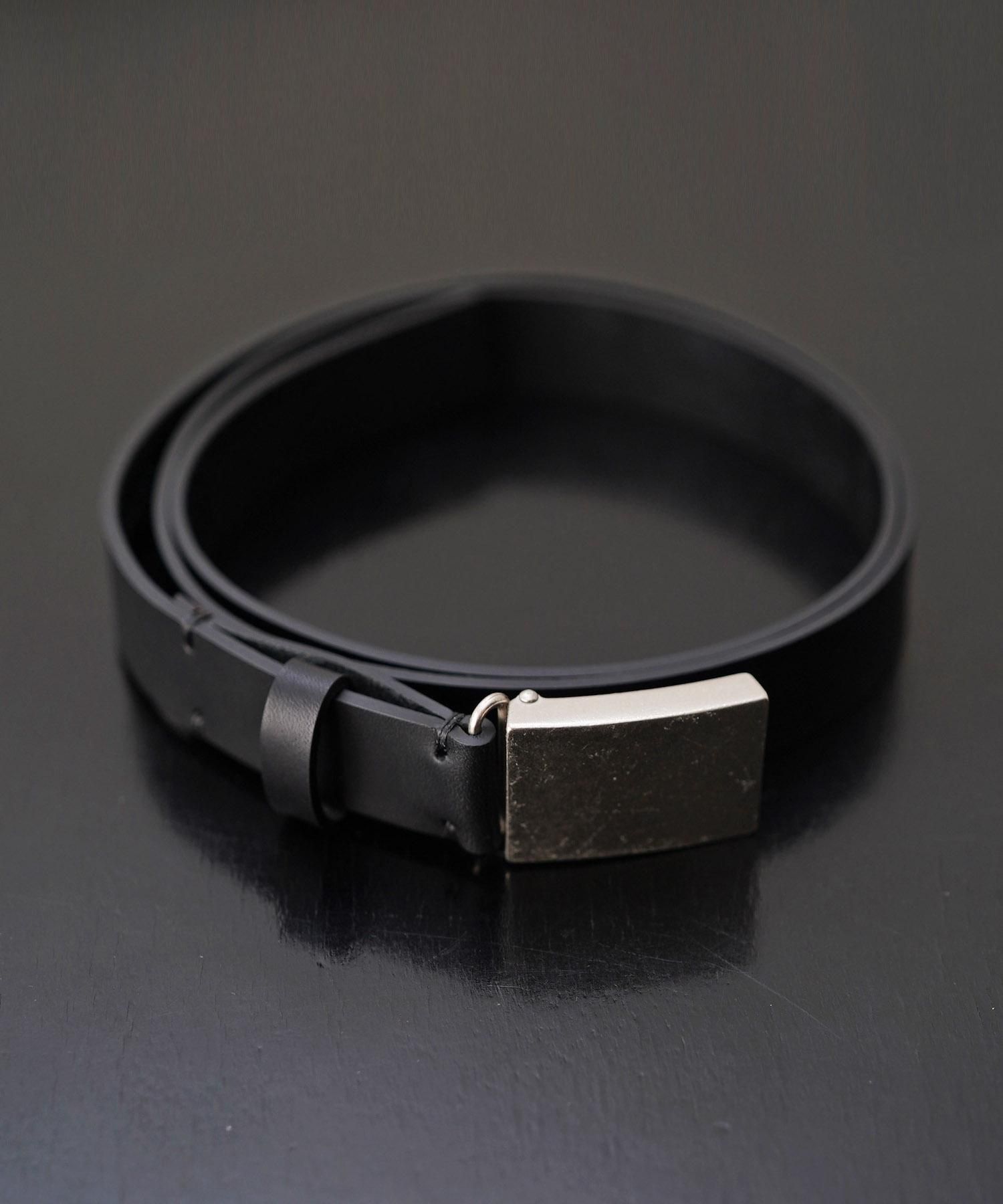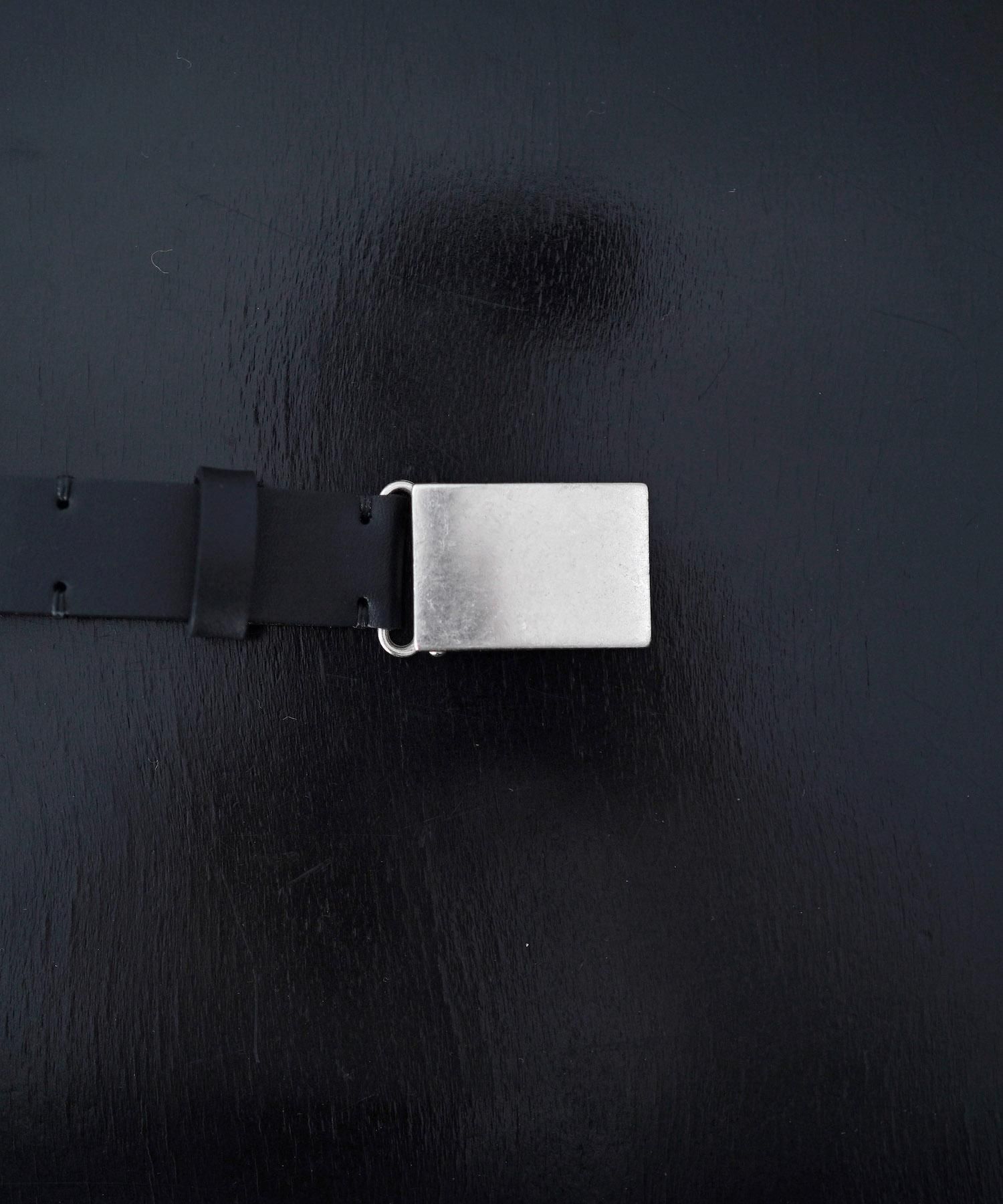 DESCRIPTION オリジナルのバックルを作成し、ミニマルな印象に仕上げたレザーベルト。いわゆるミリタリーのガチャベルトをエレガントに製作。 SIZE(cm) ONE : Width 2.5 , Length 115 MATERIAL COW LEATHER